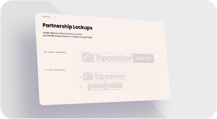 Trip Advisor Brand Book Page 12 Page 14Tripadvisor Partnership Lockups 13 Horizontal Partnership Vertical Partnership Simple alignment allows or brand to create partnership lockups. Distance is at least one pupil width.