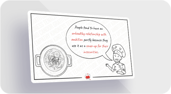 People tend to have an unhealthy relationship with ambition partly because they use it as a cover-up for their insecurities.