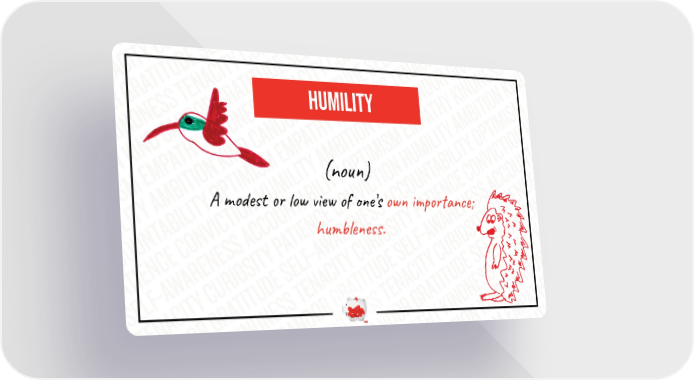 HUMILITY (noun) A modest or low view of one’s own importance; humbleness.