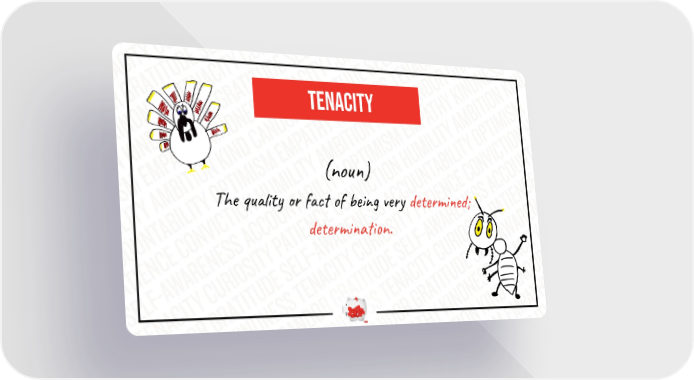 TENACITY (noun) The quality or fact of being very determined; determination.