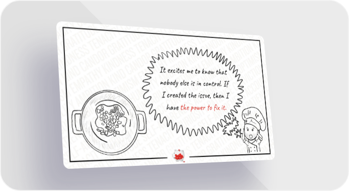 It excites me to know that nobody else is in control. If I created the issue, then I have the power to fix it.