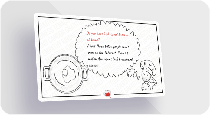 Do you have high-speed Internet at home? About three billion people aren’t even on the Internet. Even 21 million Americans lack broadband access.