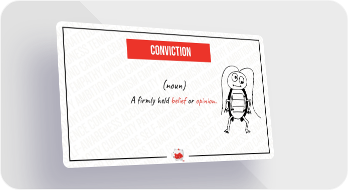 CONVICTION (noun) A firmly held belief or opinion. Twelve and a Half: A Taste of the Ingredients Page 100 Page 102