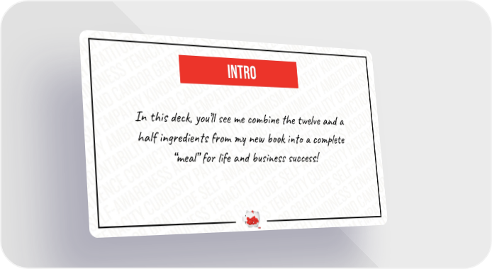 intro In this deck, you’ll see me combine the twelve and a half ingredients from my new book into a complete “meal” for life and business success!