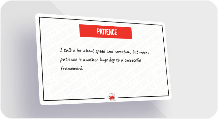 patience I talk a lot about speed and execution, but macro patience is another huge key to a successful framework.