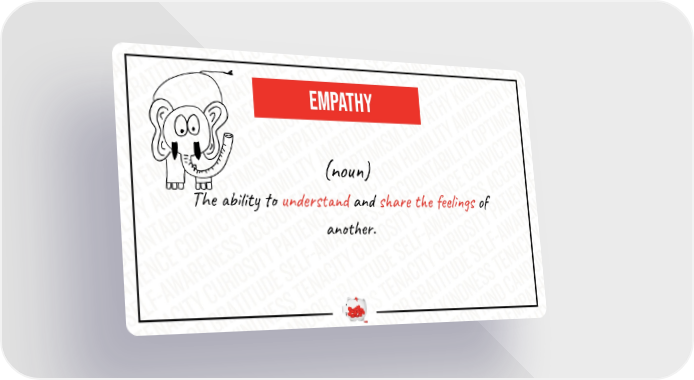 EMPATHY (noun) The ability to understand and share the feelings of another.
