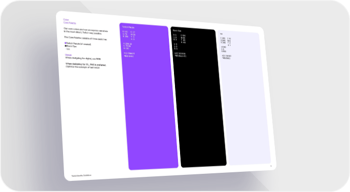 Color Core Palette Twitch Purple Black Ops Ice Our core colors are how we express ourselves R 145 C 57 R 0 C 100 R 240 C 10 in the most direct, Twitch way possible. G 70 M 60 G 0 M 80 G 240 M 4 B 255 Y 0 B 0 Y 40 B 255 Y 2 The Core Palette consists of three swatches: K 0 K 90 K 1 H 0 H 240 H 264.32 S 0 S 6 ●Twitch Purple (of course!) S 72.55 B 0 B 100 ●Black Ops B 100 ●Ice HEX 000000 HEX F0F0FF HEX 9146FF PMS Black 6C PMS 656C Usage PMS 814 C When designing for digital, use RGB. When designing for IRL, PMS is preferred. CMYK is the acronym of last resort. Twitch Identity Guidelines 8