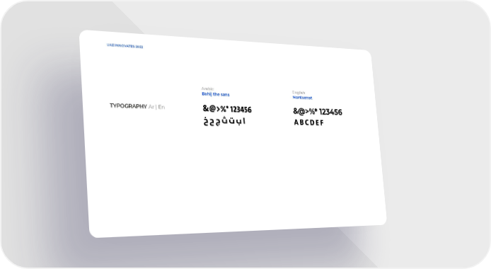 UAE INNOVATES 2022 TYPOGRAPHY Ar | En English Montserrat Arabic Bahij the sans &@>%* 123456 ا ب ت ث ج ح خ &@>%* 123456 A B C D E F