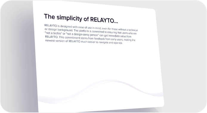 The simplicity of RELAYTO… RELAYTO is designed with ease of use in mind, even for those without a technical or design background. The platform is committed to ensuring that users who are "not a techie" or "not a design-savvy person" can get immediate value from RELAYTO. This commitment stems from feedback from early users, making the newest version of RELAYTO much easier to navigate and operate.