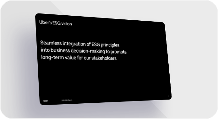 Uber ESG Report Page 3 Page 5Uber’s ESG vision Seamless integration of ESG principles into business decision-making to promote long-term value for our stakeholders. 202021 21 ESG ReportESG Report 44