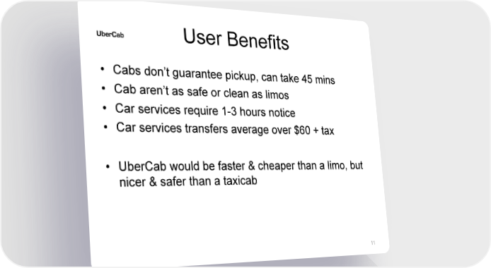 User Benefits • Cabs don’t guarantee pickup, can take 45 mins • Cab aren’t as safe or clean as limos • Car services require 1-3 hours notice • Car services transfers average over $60 + tax • UberCab would be faster & cheaper than a limo, but nicer & safer than a taxicab 11