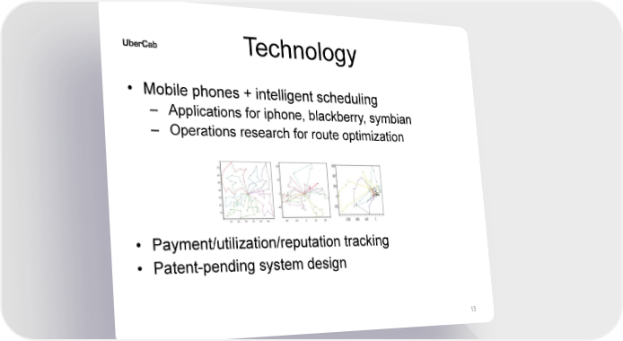 Technology • Mobile phones + intelligent scheduling – Applications for iphone, blackberry, symbian – Operations research for route optimization • Payment/utilization/reputation tracking • Patent-pending system design 15 UberCab Page 14 Page 16