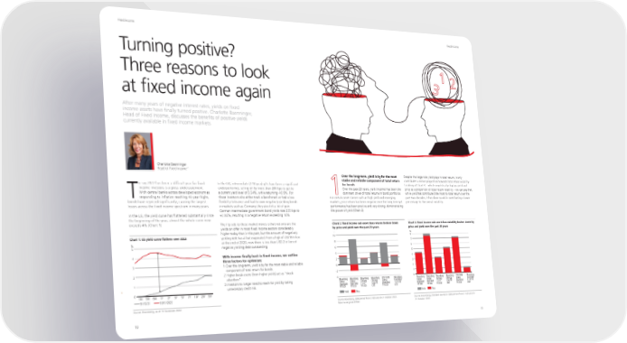 Fixed income Fixed income Turning positive? Three reasons to look 33 11 22 at fixed income again After many years of negative interest rates, yields on fixed income assets have finally turned positive. Charlotte Baenninger, Head of Fixed Income, discusses the benefits of positive yields currently available in fixed income markets. Charlotte Baenninger Head of Fixed Income`` Over the long-term, yield is by far the most Despite the large role yield plays in total return, it only stable and reliable component of total return contributes a minor proportion towards total return volatility. o say 2022 has been a difficult year for fixed In the UK, intermediate (7-10 year) gilts have been a significant for bonds Looking at Chart 3 – which simplistically displays yield and income investors is a gross understatement. underperformer, selling off by more than 260 bps to get to Over the past 20 years, yield (income) has been the price as a proportion of total return volatility – we can see that With central banks across developed economies a current yield level of 3.54%, while returning -16.9%. For 1 1 dominant driver of total returns in bond portfolios. while yield has contributed the most to total return over the Tresponding to inflation reaching 40-year highs, those investors who either track a benchmark or had a low For certain asset classes such as high yield and emerging past two decades, it has done so while contributing a lower bonds have repriced significantly, causing the largest flexibility tolerance and had to own negatively yielding bonds markets, price return has been negative over the long term yet percentage to the overall volatility. losses across the fixed income spectrum in many years. in markets such as Germany, they also felt a lot of pain. performance has been positive and very strong, demonstrating German intermediate government bond yields rose 235 bps to the power of yield (Chart 2). In the US, the yield curve has flattened substantially since +2.06%, resulting in a negative return exceeding 16%. the beginning of the year; almost the whole curve now exceeds 4% (Chart 1). The flip side to these market moves is that not only are the Chart 2: Fixed income sub asset class returns broken down Chart 3: Fixed income sub asset class volatility broken down by yields on offer in most fixed income sectors considerably by price and yield over the past 20 years price and yield over the past 20 years higher today than in the past, but the amount of negatively % % Chart 1: US yield curve flattens over 2022 yielding debt has all but evaporated. From a high of USD18 trillion 10 8 % at the end of 2020, now there is less than USD 2 trillion of 8 7 5 negative yielding debt outstanding. 6 6 5 4 With income finally back in fixed income, we outline 4 three factors for optimism: 4 2 3 3 1. Over the long-term, yield is by far the most stable and reliable component of total return for bonds. 0 2 2 2. Higher break-evens (from higher yields) act as “shock -2 1 absorbers”. -4 0 1 3. Investors no longer need to reach for yield by taking Bloomberg Bloomberg Bloomberg Bloomberg JPM EMBI Bloomberg Bloomberg Bloomberg Bloomberg Bloomberg JPM EMBI Bloomberg Global Global Gbl Agg Gbl Agg Global EuroDollar Global Global Gbl Agg Gbl Agg Global EuroDollar unnecessary credit risk. Aggregate High Yield 1-3 Yr Corp TR Diversified 1-3 Yr TR Aggregate High Yield 1-3 Yr Corp TR Diversified 1-3 Yr TR 0 TR USD TR USD TR USD USD TR USD USD TR USD TR USD TR USD USD TR USD USD 1M 3M 6M 1Y 2Y 3Y 5Y 7Y 10Y 20Y 30Y Yield Price Yield Price 31/12/21 10/11/2022 Source:Bloomberg, data period from 2 February to 31 October 2022. Source:Bloomberg, standard deviation data period from 2 February to Source: Bloomberg, as of 10 November 2022 Returns are gross of fees 31 October 2022 10 11