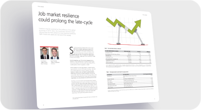 Macro outlook Macro outlook Job market resilience could prolong the late-cycle Investors may be surprised at the resilience of the global economy in 2023. Here, the Investment Solutions team discuss how the Fed’s desire to keep financial conditions tight means risk assets are not out of the woods. o far this year, the US Federal Reserve has raised Table 1 – US Labor Market Metrics to Monitor rates over six straight meetings by a total of 375 bps. Assuming the Fed follows through with an US Labor Market Metrics to Monitor Most recent data* End-2019 Difference expected 50 basis points hike in December, it will Unemployment rate (U3) 3.7% (Oct) 3.60% +0.10% Shave delivered the most cumulative tightening in Private Employment Cost Index: Wages and Salaries 5.3% (Q3) 3% +2.30% any calendar year since 1980. The speed and magnitude of Initial jobless claims 222K (Nov 12) 235K -13k rate hikes is, by design, weighing on the US economy in order to bring inflation down. Continuing jobless claims 1.5m (Nov 5) 1.9m -400k Prime-age employment to population ratio 79.8% (Oct) 80.30% -0.5% Evan Brown Ryan Primmer Amid this backdrop, over 75% of fund managers think a Aggregate labor income (YoY) 8.7% (Oct) 3.70% +5% Head of Multi- Head of Investment recession is likely over the next 12 months – a level roughly Private sector quits rate 2.9% (Sept) 2.60% +0.3% Asset Strategy Solutions on par with peak pessimism during the global financial crisis in 2009 and the COVID-19 pandemic in 2020¹. Source: Bureau of Labor Statistics, Department of Labor. *Now data: Unemployment rate as of October 2022, Private ECI as of September 30, 2022, Initial jobless claims as of Nov. 12, 2022, Continuing jobless claims as of November 5, 2022, Prime age employment to population ratio as of October 2022, Aggregate labor income as of October While a recession is a very real possibility, investors may be 2022, Private sector quits rate as of September 2022 surprised by the resilience of the global economy – even with such a sharp tightening in financial conditions. The labor market will certainly cool, but healthy household balance Table 2 – Developed market central banks’ key wage metrics sheets should continue to support spending in the services sector (Tables 1&2). Moreover, some of the major drags on the Central Bank Key Wage Metric %YoY Chg (Latest Reading) world economy emanating from Europe and China are poised Federal Reserve Private Employment Cost Index: Wages & Salaries +5.3% to get better, not worse, between now and the end of Q1 2023. (Q3) European Central Bank ECB Indicator of Negotiated Wages (Q2) +2.4% Avoiding a recession would clearly be good news; however, Bank of Japan Scheduled Contractual Earnings (Sept) +1.6% it would not signal an all-clear for risk assets. A more resilient economy may also mean central banks need to do more, not Bank of England Average Weekly Earnings Ex-Bonus/Arrears (Sept) +6.3% less, in order to get inflation durably back to target. And this Reserve Bank of Australia Wage Price Index Ex-Bonus (Q3) +3.1% raises the risks of a harder landing down the road. But, in our Reserve Bank of New Zealand Index of Salary & Wages (Q3) +3.9% view, it is too early to pre-position for very negative economic Bank of Canada BoC Common Wage Index (Q2) +3.3% outcomes. A longer-lasting late cycle environment can persist for some time, and investors will have to be flexible and Sources: US Bureau of Labor Statistics, European Central Bank, Japan Ministry of Health, Labour, and Welfare, UK Office for National Statistics, Australian Bureau of Statistics, discerning in 2023 given these potential dynamics. Statistics New Zealand, Bank of Canada ¹ Bank of America Global Research November 2022 Global Fund Manager Survey, 12 November 2022 2 3