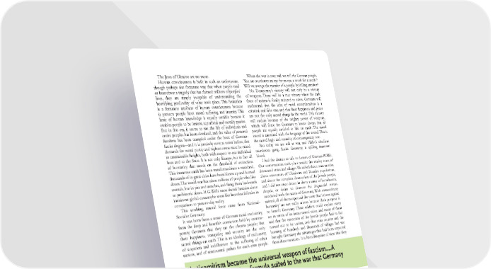The Jews of Ukraine are no more. When the war is over, will we tell the German people, Human consciousness is built in such an unfortunate, ‘You are murderers: an eye for an eye, a tooth for a tooth’? though perhaps also fortunate way that when people read Will we avenge the murder of a people by killing another? or hear about a tragedy that has claimed millions of peoples’ No. Democracy’s victory will not only be a victory lives, they are simply incapable of understanding the of weapons. There will be a true victory when the dark horrifying profundity of what took place. This limitation force of racism is finally reduced to ashes. Germans will is a fortunate attribute of human consciousness because understand that the idea of racial exceptionalism is a it protects people from moral suffering and insanity. This criminal and false one, and that their happiness and peace limit of human knowledge is equally terrible because it are not the only sacred things in the world. This victory enables people to be lenient, superficial and morally passive. will endure because of the mighty power of weapons, But in this era, it seems to me, the life of individuals and which will force the Germans to know always that all entire peoples has been devalued, and the value of personal people are equally entitled to life on earth. The raised freedom has been trampled under the boot of German- sword is answered with the language of the sword. This is fascist dogma—and it is precisely now, as never before, that the sacred logic and morality of contemporary war. demands for moral purity and righteousness must be raised But today we are still at war, and Hitler’s obedient to unattainable heights, both with respect to our individual murderous gang, fascist Germany, is spilling innocent lives and to the State. It is not only Europe, but in fact all blood. of humanity that stands on the threshold of extinction. I had the chance to talk to dozens of German POWs. This immense earth has been transformed into a wasteland, Our conversations took place amidst the smoky ruins of thousands of its great cities have been blown up and burned devastated cities and villages. We talked about mass murder, down. The world war has taken millions of people who, like about executions of Ukrainian and Russian populations, animals, live in pits and trenches, and flung them backwards and about the complete destruction of the Jewish people, to prehistoric times. H.G. Wells’ most dismal fantasies about and I did not once detect in them a sense of humiliation, imminent global catastrophe seem like harmless folktales in despair, or desire to disavow the disgraceful crimes comparison to present-day reality. associated with the name of Germany. With extraordinary This seething, amoral force came from National- naiveté, all of them espoused the view that ‘crimes against Socialist Germany. humanity’ are not really crimes because their purpose is It was born from a sense of German racial exclusivity, to benefit Germany. These soldiers could explain every from the deep and heartfelt conviction held by contem- act in terms of its instrumental value, and many of them porary Germans that they are the chosen people; that said that the execution of the Jewish people had in fact their happiness, tranquility and security are the only turned out to be useless, and that mass murder and the sacred things on earth. This is an ideology of exclusivity, burning of hundreds and thousands of villages had not of suspicion and indifference to the suffering of other brought Germany the advantages that had been expected nations, and of sentimental pathos for one’s own people. from these measures. It is from this point of view that they ntisemitism beame the universal weapon of fasism war against ewry is a formula suited to the war that Germany wanted to wage against the world This consciousness is the scourge of present day humanity, judged the massive crimes committed by Germany. and it was aroused in Germany. It has led her down a path Why did National-Socialist Germany become the of bloody crimes, and it shall bring her to the precipice of executioner of the Jewish people? I want to raise this cruel defeat. particular question not only because I myself am a Jew, In our times, the equality of all people constitutes the and not only because those closest to me were victims of highest moral principle of humanity. fascist bloodshed. Racism is the exact opposite of this principle. The treatment of Jews expressed contemporary fascist People will ask me, ‘are the Germans a nation of German ideology and tactics in their crudest and most murderers and criminals, then?’ complete and final form. The Germans did not commit No! For we believe in the great principle of equality such bestial, inhumane violence, lacking all traces of of the world’s peoples. We know that the German people humanity, against any other people on earth. For fascism, have not only produced Hitler, Goebbels, Goering hatred for the Jews became paramount; it was the fuel for its and Rozenberg; not just the Hohenzollern and Krupp fire. Antisemitism became the universal weapon of fascism. dynasties; not only Stennes and Guderian, Ley and The significance of antisemitism lies in the fact that Ribbentrop, Horst Wessel and Nietzsche. This is the same a war against Jewry is a formula suited to the war that people who produced Kant, Goethe, Hegel, Feurbach, Germany wanted to wage against the world. Given Marx, Engels, and the great martyr Liebnekht. It produced present circumstances, Jews do not have their own state, the enlightened wisdom and pure soul of August Bebel, and are scattered across all parts of the world. One finds and has borne thousands of proletarian fighters, hundreds Jews among American capitalists, English social activists, of humane and modest social and scholarly activists, and Russian communists, and French anarcho-syndicalists. many kind women and sincere old wor