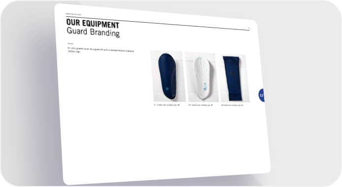 BRAND GUIDELINES 29 OUR EQUIPMENT Guard Branding All shin guards must be signed off with a stacked double diamond Umbro logo. S3 01. Guard outer branding sign off 02. Guard inner branding sign off 03 Guard sock branding sign off