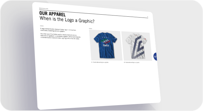 BRAND GUIDELINES 25 OUR APPAREL When is the Logo a Graphic? A large stacked double diamond Umbro logo in its true form constitutes a branding and not a graphic. Any other use of the Umbro word or double diamond (artistic execution or typeface) is considered a graphic and as such requires a stacked double diamond Umbro logo sign-off on the left sleeve. S3 01. Double diamond logo as a graphic 02. Double diamond logo as a graphic