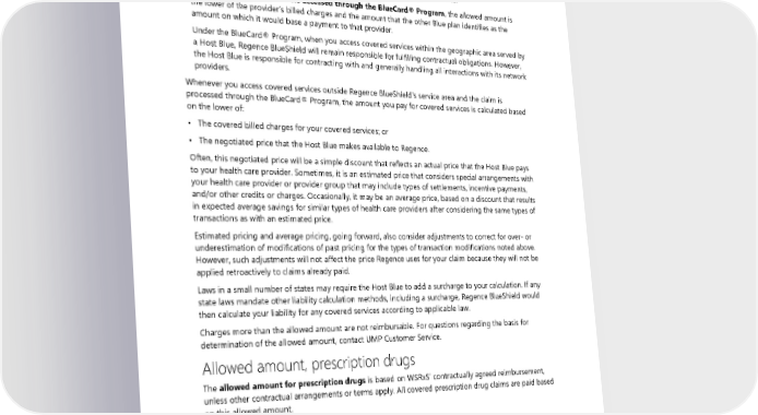 • For out-of-network providers who are within the Regence BlueShield service area and not contracted with Regence BlueShield, the amount Regence has determined to be reasonable charges for covered services and supplies is the allowed amount. The allowed amount may be based upon the billed charges for some services, as determined by Regence or as otherwise required by law. If a provider is not in the network, as described above, but has a contract with Regence, the allowed amount is based on the negotiated rate. • For out-of-network providers accessed through the BlueCard® Program, the allowed amount is the lower of the provider’s billed charges and the amount that the other Blue plan identifies as the amount on which it would base a payment to that provider. Under the BlueCard® Program, when you access covered services within the geographic area served by a Host Blue, Regence BlueShield will remain responsible for fulfilling contractual obligations. However, the Host Blue is responsible for contracting with and generally handling all interactions with its network providers. Whenever you access covered services outside Regence BlueShield’s service area and the claim is processed through the BlueCard® Program, the amount you pay for covered services is calculated based on the lower of: • The covered billed charges for your covered services; or • The negotiated price that the Host Blue makes available to Regence. Often, this negotiated price will be a simple discount that reflects an actual price that the Host Blue pays to your health care provider. Sometimes, it is an estimated price that considers special arrangements with your health care provider or provider group that may include types of settlements, incentive payments, and/or other credits or charges. Occasionally, it may be an average price, based on a discount that results in expected average savings for similar types of health care providers after considering the same types of transactions as with an estimated price. Estimated pricing and average pricing, going forward, also consider adjustments to correct for over- or underestimation of modifications of past pricing for the types of transaction modifications noted above. However, such adjustments will not affect the price Regence uses for your claim because they will not be applied retroactively to claims already paid. Laws in a small number of states may require the Host Blue to add a surcharge to your calculation. If any state laws mandate other liability calculation methods, including a surcharge, Regence BlueShield would then calculate your liability for any covered services according to applicable law. Charges more than the allowed amount are not reimbursable. For questions regarding the basis for determination of the allowed amount, contact UMP Customer Service. Allowed amount, prescription drugs The allowed amount for prescription drugs is based on WSRxS’ contractually agreed reimbursement, unless other contractual arrangements or terms apply. All covered prescription drug claims are paid based on this allowed amount. Ambulatory surgery center (ASC) An ambulatory surgery center (ASC) is a health care facility that specializes in providing surgery, pain management, and certain diagnostic services in an outpatient setting. ASC-qualified procedures are typically more complex than those done in a doctor’s office but not so complex as to require an overnight stay. Procedures commonly performed in these centers include colonoscopies, endoscopies, cataract 170 2024 UMP CDHP (PEBB) Certificate of Coverage