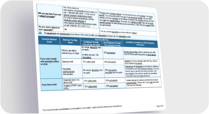 Yes. Find a doctor at ump.regence.com/go/pebb/ump-plus-pshvn or This plan uses a provider network. You will pay less if you use a provider in the plan's call 1- 888-849-3681 (TRS: 711) for a list of network. You will pay the most if you use an out-of-network provider, and you might Will you pay less if you use network providers (preferred providers). receive a bill from a provider for the difference between the provider's charge and what a network provider? For a list of network pharmacies, visit the your plan pays (balance billing). Be aware, your network provider might use an out-of- pharmacy-locator webpage at network provider for some services (such as lab work). Check with your provider before ump.regence.com/go/2024/pharmacy-locator you get services. or call 1-888-361-1611 (TRS: 711). Do you need a referral to No. You can see the specialist you choose without a referral. see a specialist? All copayment and coinsurance costs shown in this chart are after your deductible has been met, if a deductible applies. Common Medical Services You May What You Will Pay Limitations, Exceptions, & Other Important Event Need In-Network Provider Out-of-Network Provider Information (You will pay the least) (You will pay the most) No charge, deductible does Primary care visit to not apply; Primary care provider must be contracted with UMP treat an injury or illness 50% coinsurance Plus–PSHVN to avoid being billed as out-of-network. All other services: 15% If you visit a health coinsurance care provider's office Specialist visit 15% coinsurance 50% coinsurance Specialist must be contracted with UMP Plus–PSHVN or clinic to be covered as in-network. Coinsurance and deductible do not apply for childhood Preventive No charge, deductible does 50% coinsurance, immunizations from out-of-network providers. You may care/screening/ not apply deductible does not apply have to pay for services that aren't preventive. Ask immunization your provider if the services needed are preventive. Then check what your plan will pay for. Diagnostic test (x-ray, 15% coinsurance 50% coinsurance Certain tests aren’t covered, and other tests require If you have a test blood work) preauthorization. Please refer to your plan document. Imaging (CT/PET scans, 15% coinsurance 50% coinsurance *See section Radiology. MRIs) * For more information about limitations and exceptions, see the plan or policy document at hca.wa.gov/ump-pebb-coc. Page 2 of 8