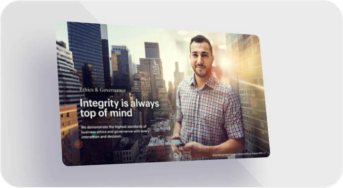Ethics & Governance Integrity is always top of mind We demonstrate the highest standards of business ethics and governance with every interaction and decision. United Nations Global Compact: Communication on Progress 2020 | 50