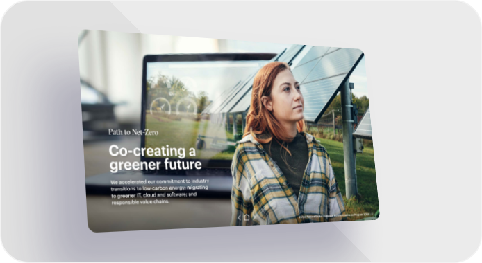 Path to Net-Zero Co-creating a greener future We accelerated our commitment to industry transitions to low-carbon energy; migrating to greener IT, cloud and software; and responsible value chains. United Nations Global Compact: Communication on Progress 2020 | 32