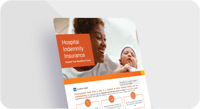 Out-of-pocket costs from a stay in a hospital or other medical facility can be overwhelming. As expenses add up, Hospital Indemnity Insurance can help. This document includes expanded cost and benefit information for Hospital Indemnity Insurance. As you explore, keep in mind: Hospital Indemnity Insurance doesn’t replace your medical coverage; instead, it complements it. The benefit payments don’t go out to pay for medical bills or treatments you may need, instead they come in— directly to you—to be used however you’d like. Choose this supplemental health insurance product for added protection if one of the following covered conditions comes your way. Hospital Indemnity Insurance is a limited benefit policy. It is not health insurance, and does not satisfy the requirement of minimum essential coverage under the Affordable Care Act. ReliaStar Life Insurance Company a member of the Voya® family of companies No medical questions or tests are required for coverage. Simplified claims process has limited paperwork and can be submitted/tracked online. Benefit payments go directly to you. Use them however you’d like! Hospital Indemnity Insurance Explore Your Benefits & Costs Group Name: UnityPoint Health Group Number: 688941