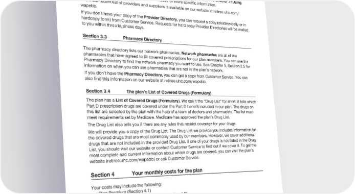 2024 Evidence of Coverage for UnitedHealthcare® Group Medicare Advantage PEBB Balance (PPO) Chapter 1: Getting started as a member 5 Program, and the services are covered benefits and medically necessary. See Chapter 3 (Using the plan’s coverage for your medical services) for more specific information. The most recent list of providers and suppliers is available on our website at retiree.uhc.com/ wapebb. If you don’t have your copy of the Provider Directory, you can request a copy (electronically or in hardcopy form) from Customer Service. Requests for hard copy Provider Directories will be mailed to you within three business days. Section 3.3 Pharmacy Directory The pharmacy directory lists our network pharmacies. Network pharmacies are all of the pharmacies that have agreed to fill covered prescriptions for our plan members. You can use the Pharmacy Directory to find the network pharmacy you want to use. See Chapter 5, Section 2.5 for information on when you can use pharmacies that are not in the plan’s network. If you don’t have the Pharmacy Directory, you can get a copy from Customer Service. You can also find this information on our website at retiree.uhc.com/wapebb. Section 3.4 The plan’s List of Covered Drugs (Formulary) The plan has a List of Covered Drugs (Formulary). We call it the “Drug List” for short. It tells which Part D prescription drugs are covered under the Part D benefit included in our plan. The drugs on this list are selected by the plan with the help of a team of doctors and pharmacists. The list must meet requirements set by Medicare. Medicare has approved the plan’s Drug List. The Drug List also tells you if there are any rules that restrict coverage for your drugs. We will provide you a copy of the Drug List. The Drug List we provide you includes information for the covered drugs that are most commonly used by our members. However, we cover additional drugs that are not included in the provided Drug List. If one of your drugs is not listed in the Drug List, you should visit our website or contact Customer Service to find out if we cover it. To get the most complete and current information about which drugs are covered, you can visit the plan’s website (retiree.uhc.com/wapebb) or call Customer Service. Section 4 Your monthly costs for the plan Your costs may include the following: · Plan Premium (Section 4.1) · Monthly Medicare Part B Premium (Section 4.2) · Part D Late Enrollment Penalty (Section 4.3) · Income Related Monthly Adjusted Amount (Section 4.4) Medicare Part B and Part D premiums differ for people with different incomes. If you have questions about these premiums review your copy of Medicare & You 2024 handbook, the section called “2024 Medicare Costs.” If you need a copy you can download it from the Medicare website