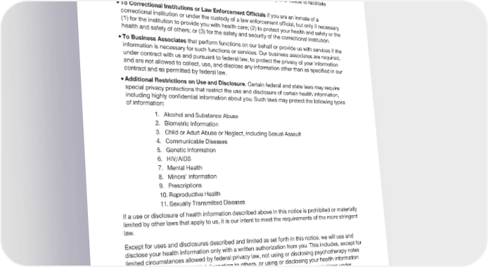 2024 Evidence of Coverage for UnitedHealthcare® Group Medicare Advantage PEBB Balance (PPO) Chapter 8: Your rights and responsibilities 185 · For Organ Procurement Purposes. We may collect, use, and disclose information to entities that handle procurement, banking or transplantation of organs, eyes or tissue to facilitate donation and transplantation. · To Correctional Institutions or Law Enforcement Officials if you are an inmate of a correctional institution or under the custody of a law enforcement official, but only if necessary (1) for the institution to provide you with health care; (2) to protect your health and safety or the health and safety of others; or (3) for the safety and security of the correctional institution. · To Business Associates that perform functions on our behalf or provide us with services if the information is necessary for such functions or services. Our business associates are required, under contract with us and pursuant to federal law, to protect the privacy of your information and are not allowed to collect, use, and disclose any information other than as specified in our contract and as permitted by federal law. · Additional Restrictions on Use and Disclosure. Certain federal and state laws may require special privacy protections that restrict the use and disclosure of certain health information, including highly confidential information about you. Such laws may protect the following types of information: 1. Alcohol and Substance Abuse 2. Biometric Information 3. Child or Adult Abuse or Neglect, including Sexual Assault 4. Communicable Diseases 5. Genetic Information 6. HIV/AIDS 7. Mental Health 8. Minors’ Information 9. Prescriptions 10. Reproductive Health 11. Sexually Transmitted Diseases If a use or disclosure of health information described above in this notice is prohibited or materially limited by other laws that apply to us, it is our intent to meet the requirements of the more stringent law. Except for uses and disclosures described and limited as set forth in this notice, we will use and disclose your health information only with a written authorization from you. This includes, except for limited circumstances allowed by federal privacy law, not using or disclosing psychotherapy notes about you, selling your health information to others, or using or disclosing your health information for certain promotional communications that are prohibited marketing communications under federal law, without your written authorization. Once you give us authorization to release your health information, we cannot guarantee that the recipient to whom the information is provided will not disclose the information. You may take back or "revoke" your written authorization at any time in writing, except if we have already acted based on your authorization. To find out where to mail