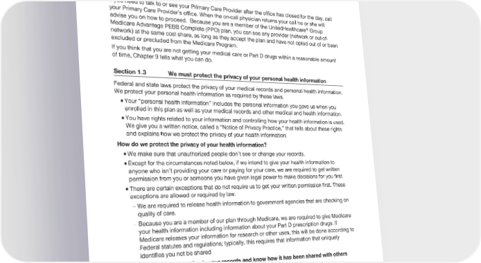 2024 Evidence of Coverage for UnitedHealthcare® Group Medicare Advantage PEBB Complete (PPO) Chapter 8: Your rights and responsibilities 179 you need that care. You also have the right to get your prescriptions filled or refilled at any of our network pharmacies without long delays. How to Receive Care After Hours If you need to talk to or see your Primary Care Provider after the office has closed for the day, call your Primary Care Provider’s office. When the on-call physician returns your call he or she will advise you on how to proceed. Because you are a member of the UnitedHealthcare® Group Medicare Advantage PEBB Complete (PPO) plan, you can see any provider (network or out-of- network) at the same cost share, as long as they accept the plan and have not opted out of or been excluded or precluded from the Medicare Program. If you think that you are not getting your medical care or Part D drugs within a reasonable amount of time, Chapter 9 tells what you can do. Section 1.3 We must protect the privacy of your personal health information Federal and state laws protect the privacy of your medical records and personal health information. We protect your personal health information as required by these laws. · Your “personal health information” includes the personal information you gave us when you enrolled in this plan as well as your medical records and other medical and health information. · You have rights related to your information and controlling how your health information is used. We give you a written notice, called a “Notice of Privacy Practice,” that tells about these rights and explains how we protect the privacy of your health information. How do we protect the privacy of your health information? · We make sure that unauthorized people don’t see or change your records. · Except for the circumstances noted below, if we intend to give your health information to anyone who isn’t providing your care or paying for your care, we are required to get written permission from you or someone you have given legal power to make decisions for you first. · There are certain exceptions that do not require us to get your written permission first. These exceptions are allowed or required by law. - We are required to release health information to government agencies that are checking on quality of care. - Because you are a member of our plan through Medicare, we are required to give Medicare your health information including information about your Part D prescription drugs. If Medicare releases your information for research or other uses, this will be done according to Federal statutes and regulations; typically, this requires that information that uniquely identifies you not be shared You can see the information in your records and know how it has been shared with others You have the right to look at your medical records held at the plan, and to get a copy of your records. We are allowed to charge you a fee for making copies. You also have the right to ask us to make additions or corrections to your medical records. If you ask us to do this, we will work with your health care provider to decide whether the changes should be made.