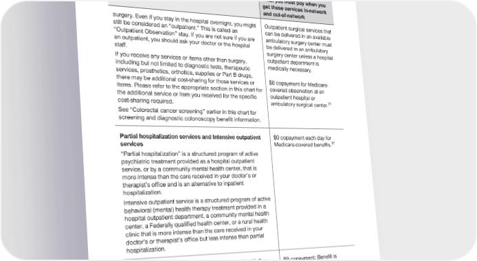 2024 Evidence of Coverage for UnitedHealthcare® Group Medicare Advantage PEBB Complete (PPO) Chapter 4: Medical Benefits Chart (what is covered and what you pay) 112 Services that are covered for you What you must pay when you get these services in-network and out-of-network surgery. Even if you stay in the hospital overnight, you might Outpatient surgical services that still be considered an “outpatient.” This is called an can be delivered in an available “Outpatient Observation” stay. If you are not sure if you are ambulatory surgery center must an outpatient, you should ask your doctor or the hospital be delivered in an ambulatory staff. surgery center unless a hospital If you receive any services or items other than surgery, outpatient department is including but not limited to diagnostic tests, therapeutic medically necessary. services, prosthetics, orthotics, supplies or Part B drugs, there may be additional cost-sharing for those services or $0 copayment for Medicare- items. Please refer to the appropriate section in this chart for covered observation at an the additional service or item you received for the specific outpatient hospital or cost-sharing required. ambulatory surgical center.†† See “Colorectal cancer screening” earlier in this chart for screening and diagnostic colonoscopy benefit information. Partial hospitalization services and Intensive outpatient $0 copayment each day for services Medicare-covered benefits.†† “Partial hospitalization” is a structured program of active psychiatric treatment provided as a hospital outpatient service, or by a community mental health center, that is more intense than the care received in your doctor’s or therapist’s office and is an alternative to inpatient hospitalization. Intensive outpatient service is a structured program of active behavioral (mental) health therapy treatment provided in a hospital outpatient department, a community mental health center, a Federally qualified health center, or a rural health clinic that is more intense than the care received in your doctor’s or therapist’s office but less intense than partial hospitalization. Personal emergency response system (PERS) Lifeline $0 copayment; Benefit is A personal emergency response system (PERS) benefit is available through provider available to you through the provider, Lifeline. Lifeline.