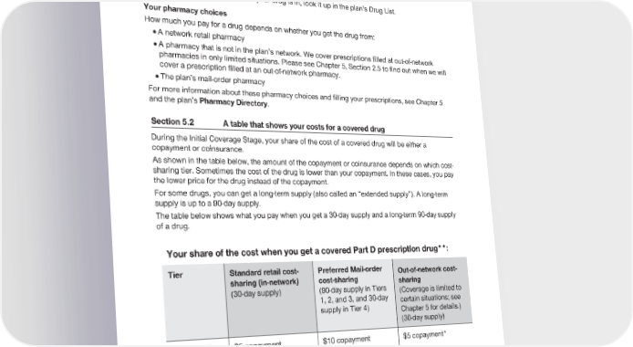 2024 Evidence of Coverage for UnitedHealthcare® Group Medicare Advantage PEBB Complete (PPO) Chapter 6: What you pay for your Part D prescription drugs 166 Tier 4 – Specialty Tier - Unique and/or very high-cost brand drugs. This is the highest cost-sharing tier. To find out which cost-sharing tier your drug is in, look it up in the plan’s Drug List. Your pharmacy choices How much you pay for a drug depends on whether you get the drug from: · A network retail pharmacy · A pharmacy that is not in the plan’s network. We cover prescriptions filled at out-of-network pharmacies in only limited situations. Please see Chapter 5, Section 2.5 to find out when we will cover a prescription filled at an out-of-network pharmacy. · The plan’s mail-order pharmacy For more information about these pharmacy choices and filling your prescriptions, see Chapter 5 and the plan’s Pharmacy Directory. Section 5.2 A table that shows your costs for a covered drug During the Initial Coverage Stage, your share of the cost of a covered drug will be either a copayment or coinsurance. As shown in the table below, the amount of the copayment or coinsurance depends on which cost- sharing tier. Sometimes the cost of the drug is lower than your copayment. In these cases, you pay the lower price for the drug instead of the copayment. For some drugs, you can get a long-term supply (also called an “extended supply”). A long-term supply is up to a 90-day supply. The table below shows what you pay when you get a 30-day supply and a long-term 90-day supply of a drug. Your share of the cost when you get a covered Part D prescription drug**: Tier Standard retail cost- Preferred Mail-order Out-of-network cost- sharing (in-network) cost-sharing sharing (30-day supply) (90-day supply in Tiers (Coverage is limited to 1, 2, and 3, and 30-day certain situations; see supply in Tier 4) Chapter 5 for details.) (30-day supply) Cost-Sharing $5 copayment $10 copayment $5 copayment* Tier 1 Preferred Generic