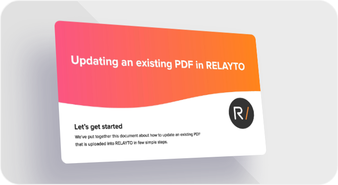 Let's get started We've put together this document about how to update an existing PDF that is uploaded into RELAYTO in few simple steps.