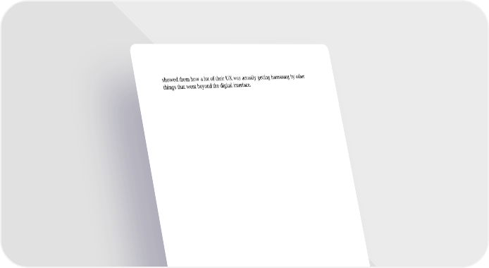 showed them how a lot of their UX was actually getting hamstrung by other things that went beyond the digital interface.
