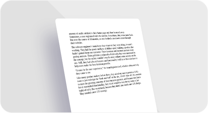 amount of traffic trickled to their home page and then bounced away. Sometimes, a user registered with the service. Sometimes, they even came back. But over the course of 18 months, no one booked a treatment center through their website. The software engineer’s team knew that whatever they were doing, it wasn’t working. They had the proof: millions of dollars spent building a product that hadn’t gained them one customer. Their investors and business partners were getting anxious. Their publicist continued to find media that were interested in the concept, but the outlets wouldn’t run the story without some activity on the site. Still, they had a lot of features and functionality built in to their interface to help users make the best decision possible. “It must be the user experience,” the team hypothesized, which is when and why they came to me. Like many product makers before them, they asked my user experience (UX) team to just redesign the “look and feel” of the site, ASAP. After all, they needed to meet the growing concerns of their business partners, and because they had a lot of entrenched functionality, they felt it would be easy for my team to just build off of it. But we refused, because they didn’t just need a new UX design. They needed a new UX strategy.