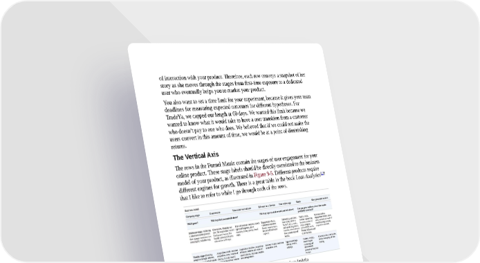 of interaction with your product. Therefore, each row conveys a snapshot of her story as she moves through the stages from first-time exposure to a dedicated user who eventually helps you to market your product. You also want to set a time limit for your experiment, because it gives your team deadlines for measuring expected outcomes for different hypotheses. For TradeYa, we capped our length at 60 days. We wanted this limit because we wanted to know what it would take to have a user transition from a customer who doesn’t pay to one who does. We believed that if we could not make the users convert in this amount of time, we would be at a point of diminishing returns. The Vertical Axis The rows in the Funnel Matrix contain the stages of user engagement for your online product. These stage labels should be directly correlated to the business model of your product, as illustrated in Figure 9-5. Different products require [67] different engines for growth. There is a great table in the book Lean Analytics that I like to refer to while I go through each of the rows. Figure 9-5. Business model stages from Lean Analytics I recommend that you start the Funnel Matrix exercise with the generic stage definitions provided but take time to customize them as the content and the data for the other cells falls into place. You might not need the exact stage labels shown in Figure 9-6, because there will be known and unknown exceptions about how people will engage with your product. But these generic labels will get you started. What is crucial about the stages is that they flow as a linear and measurable progression down the funnel of the product.