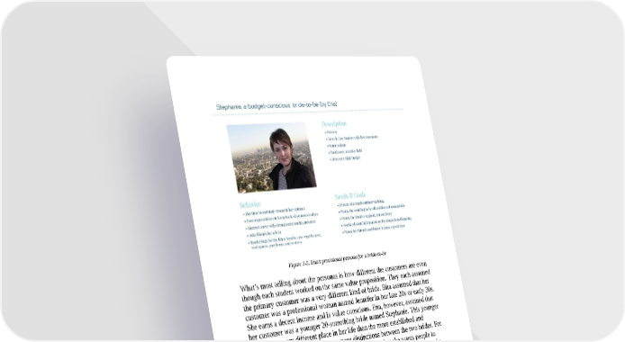 Figure 3-5. Ena’s provisional persona for a bride-to-be What’s most telling about the personas is how different the customers are even though each student worked on the same value proposition. They each assumed the primary customer was a very different kind of bride. Bita assumed that her customer was a professional woman named Jennifer in her late 20s or early 30s. She earns a decent income and is value conscious. Ena, however, assumed that her customer was a younger 20-something bride named Stephanie. This younger bride is in a very different place in her life than the more established and professional Jennifer. This creates more distinctions between the two brides. For instance, price is an issue for the younger Stephanie, but she wants people to have fun. She’s willing to compromise and not have fancy food or that big of a wedding. However, Jennifer is efficient and a problem solver. She has high expectations that everything will be perfect. She needs a solution that will help her save time and get good value. Which persona is the right one? It doesn’t matter right now, because Bita and Ena are just working with assumptions anyway, and what they’ve built in the provisional personas are just more assumptions. Perhaps in the final product they might be able to suit the needs of both personas, but until then, everything in the personas remains an assumption until proven true or false. Regardless of who ends up being more “correct,” though, the provisional personas helped Bita and