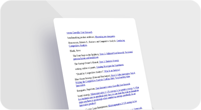 versus Guerrilla User Research benchmarking product attributes, Measuring raw data points Bensoussan, Babette E., Business and Competitive Analysis, Conducting Competitive Analysis Blank, Steve The Four Steps to the Epiphany, Tenet 3: Validated User Research, Provisional persona layout and breakdown The Startup Owner’s Manual, Tenet 1: Business Strategy writing outline of panels, Creating Prototypes for Experiments “Death by Competitive Analysis”, What Is an Analysis? Blue Ocean Strategy (Kim and Mauborgne), Tenet 2: Value Innovation, Step 4: Writing the Competitive Analysis Findings Brief, Storyboarding Value Innovation Bonaparte, Napoleon, User Research versus Guerrilla User Research brand strategy, Misinterpretation 3: UX strategy is just product strategy, 9. What is a business case or anecdotal story that you can share that walk us through the steps you have to go through when conducting strategy specifically for an innovative product? Brant Cooper, Lean Entrepreneur, Misinterpretation 3: UX strategy is just product strategy Brown, Sunni, Gamestorming, How I Discovered My UX Strategy Framework, Storyboard the Value Innovation Build-Measure-Learn feedback loops, Customer discovery, How I Became an Experiment Addict building consensus, on shared vision, 7. Have you ever conducted any form of experiments on your product or UX strategy, whether it be trying to get market validation on a value proposition or testing prototypes on target customers? How do you get closer to the truth while you are conducting strategy? Buley, Leah, The User Experience Team of One, Guerrilla User Research: