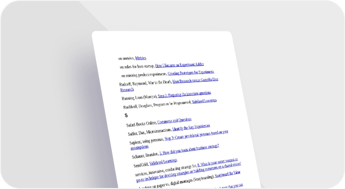 on metrics, Metrics on rules for lean startup, How I Became an Experiment Addict on running product experiments, Creating Prototypes for Experiments Rudorff, Raymond, War to the Death, User Research versus Guerrilla User Research Running Lean (Maurya), Step 2: Preparing the interview questions Rushkoff, Douglass, Program or be Programmed, Validated Learnings S Safari Books Online, Comments and Questions Saffer, Dan, Microinteractions, Identify the Key Experiences Sapient, using personas, Step 3: Create provisional personas based on your assumptions Schauer, Brandon, 3. How did you learn about business strategy? SendGrid, Validated Learnings services, innovative, conducting strategy for, 8. What is your secret weapon or go-to technique for devising strategies or building consensus on a shared vision? sketching on paper vs. digital montages (Storyboarding), Storyboard the Value Innovation skills, for strategists, 9. What is a business case or anecdotal story that you can share that walk us through the steps you have to go through when conducting strategy specifically for an innovative product?, 9. What is a business case or anecdotal story that you can share that walk us through the steps you have to go through when conducting strategy specifically for an innovative product?, 9. What is a business case or anecdotal story that you can share that walk us through the steps you have to go through when conducting strategy specifically for an innovative product?, 9. What is a business case or anecdotal story that you can share that walks us through the steps you have to go through when conducting strategy specifically for an innovative product?