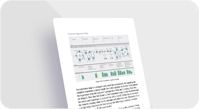 Figure 10-2. A customer experience map An experience map is a strategic tool, rooted in user research, for capturing the complete experience a person might have with a product or service. It documents the experience from the customer’s perspective. What they’re doing. How they are doing it. How they feel about it. I use experience maps to help me understand the end-to-end experience a customer has with a brand. It helps me to see where the brand is creating value for the customer and where it is not. Ultimately, it’s a tool that helps determine the best strategy for delivering a seamless customer experience across multiple touch points. I use customer experience maps to help focus a client on the customer. I bring stakeholders from across the business together and take them through the map. It’s a great tool for helping them understand the experience from the customer’s perspective and can be used to help build consensus on how to best serve customers at each touch point. Depending on the nature of the engagement, I also might create a service map. It’s similar to a user experience map but from the business’s perspective. It captures how the business services the customer at each touch point. I layer this over the customer experience map to help understand what the business is doing, as a way of contextualizing the customer experience. Each map tends to be a little different because they’re based on research, the