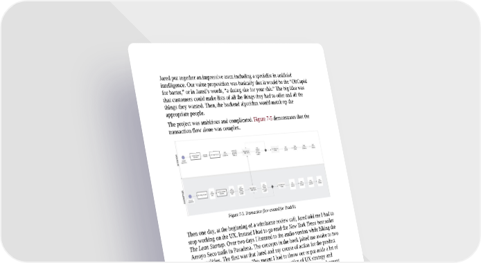 Jared put together an impressive team including a specialist in artificial intelligence. Our value proposition was basically that it would be the “OkCupid for barter,” or in Jared’s words, “a dating site for your shit.” The big idea was that customers could make lists of all the things they had to offer and all the things they wanted. Then, the backend algorithm would match up the appropriate people. The project was ambitious and complicated. Figure 7-5 demonstrates that the transaction flow alone was complex. Figure 7-5. Transaction flow created for TradeYa Then one day, at the beginning of a wireframe review call, Jared told me I had to stop working on the UX. Instead I had to go read the New York Times best seller The Lean Startup. Over two days I listened to the audio version while hiking the Arroyo Seco trails in Pasadena. The concepts in the book jolted me awake to two scary realities. The first was that Jared and my course of action for the product drastically needed to change. This meant I had to throw out or put aside a lot of hard UX work. The second reality was that my practice of UX strategy and design methodology based on the traditional “waterfall” software development model was now outdated. The rules had completely changed: No more working on UX strategy phases geared toward a big 1.0 “launch.” Now, I needed to plan for making small incremental prereleases (MVPs) that articulated different aspects of the UX. No more working in isolation and then just handing off documentation to the team (stakeholders, developers, designers). Now, I needed to continuously collaborate and strategize with them to ensure that the product was released as quickly as possible.