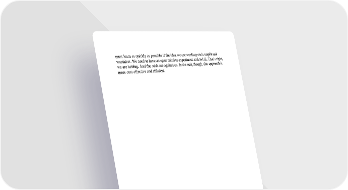 must learn as quickly as possible if the idea we are working on is stupid and worthless. We need to have an open mind to experiment and to fail. That’s right, we are betting. And the odds are against us. In the end, though, this approach is more cost-effective and efficient.
