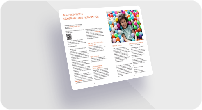 INSCHRIJVINGEN GEMEENTELIJKE ACTIVITEITEN Inschrijven voor gemeentelijke activiteiten kan vanaf woensdag 3 mei om 19 uur via www.beveren.be. U kunt inschrijven via beveren.kwandoo.com of Wie geen internet of computer ter beschikking scan de QR-code. hee昀琀, kan de computers van de Sportdienst gebruiken. Dat kan op woensdag 3 mei tussen 19 en 20 uur. Ook in de bib kunt u een computer met internetverbinding gebruiken. Breng wel het nodige mee om uw online betaling in orde te Als u nog niet geregistreerd bent, moet u maken (bankkaart, kaartlezer …). eenmalig een nieuw account aanmaken. Hiervoor hee昀琀 u uw rijksregisternummer nodig. Hoe gaat u te werk? INSCHRIJVEN = BETALEN = DEELNEMEN • Klik op de startpagina onderaan links op de Annuleren is enkel mogelijk met een knop ‘Registreer’. doktersattest. Breng het attest zo snel mogelijk KORTING UITPAS KIA-CHEQUE (KIND IN ACTIE) • Maak een account aan door de gegevens van binnen bij de Sport- of Jeugddienst. Uw Elk kind van 2 tot 18 jaar dat ofwel het gezinshoofd in te vullen. Dat gebeurt in 3 inschrijvingsgeld wordt dan terugbetaald. Hee昀琀 u een beperkt inkomen, dan kunt u stappen. Klik telkens op ‘volgende’ en na stap 3 voor uzelf en uw kinderen een UiTPAS met • recht hee昀琀 op verhoogde tegemoetkoming in ste kansentarief aanvragen. Hiervoor moet u ofwel op ‘bewaar’. Vergeet bij de 1 stap ook niet aan de ziekteverzekering te vinken dat u akkoord gaat met de algemene VERZEKERING recht hebben op de verhoogde tegemoetkoming • uit een gezin komt waarbij het netto belastbaar voorwaarden. De deelnemers zijn tijdens de activiteiten in de ziekteverzekering ofwel cliënt zijn bij gezinsinkomen niet hoger is dan 33 000 EUR • Na het doorlopen van de registratieprocedure verzekerd tegen ongevallen via een algemene het OCMW. Met deze UiTPAS krijgen kinderen • uit een gezin komt met schuldenlast ontvangt u een activatiemail op uw verzekeringspolis bij ISB / ETHIAS. 80 % korting op de deelnameprijs van de hee昀琀 recht op een KIA-cheque van 25 EUR te e-mailadres. U kunt uw account activeren door gemeentelijke activiteiten van Vakantietoppers. besteden aan vrijetijdsactiviteiten. op de link in de mail te klikken. Meer info over de UiTPAS vindt u op U komt dan terug op de startpagina van onze www.beveren.be/uitpas. U kunt uw inschrijvingsbewijs van site en kunt nu inloggen met uw e-mailadres WIJZIGINGEN EN Vakantietoppers hiervoor gebruiken. en het paswoord dat u bij het registreren hebt AFGELASTINGEN Kinderen die recht hebben op een UiTPAS met aangemaakt. Kleine wijzigingen aan het programma zijn Om privacyredenen is het onmogelijk om online kansentarief, hebben ook recht op deze Na het inloggen klikt u op de knop ‘voeg mogelijk. Indien nodig worden wijzigingen te controleren wie wel of geen UiTPAS met KIA-cheque. gezinslid toe’ en voegt u alle kinderen toe die u schri昀琀elijk of telefonisch meegedeeld aan kansentarief hee昀琀. Als u in aanmerking komt voor een activiteit wilt inschrijven. diegenen die al zijn ingeschreven. Bij gebrek voor deze korting, vragen wij u om in te schrijven Meer info over de KIA-cheque • Inschrijven voor de activiteiten kan pas vanaf aan belangstelling wordt het sportkamp of aan de balie van de Sportdienst op woensdag 3 mei om 19 uur maar u kunt nu al uw account de activiteit afgelast. In dat geval wordt de 3 mei van 19 tot 20 uur. Na 3 mei kunt u uw SOCIAAL HUIS aanmaken en de nodige informatie invullen. deelnameprijs terugbetaald. kind inschrijven aan de Vrijetijdsbalie in het Gravenplein 8 | 9120 Beveren gemeentehuis. T 03 750 15 11 | E info@beveren.be 444 5