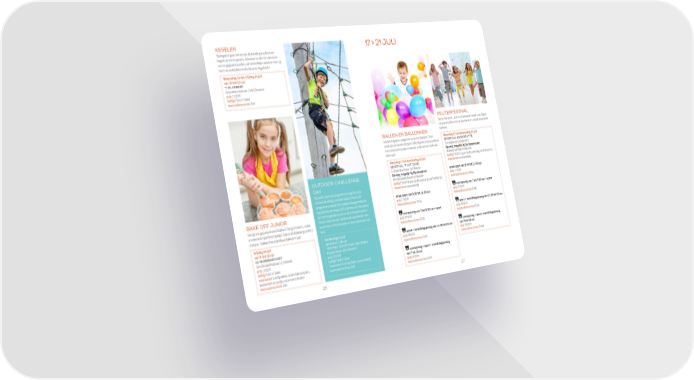KEGELEN 17 > 21 JULI Bij kegelen gaan we net als bij bowling trachten om kegels omver te gooien. Wanneer ze alle 9 in één keer omver gegooid worden, zal het belletje rinkelen! Kom jij het mee ontdekken in de Beverse Kegelclub? Woensdag 12 tot vrijdag 14 juli van 10 tot 12 uur ’T ZILLEBEEK Glazenleeuwstraat 134A | Beveren prijs 13 EUR leeftijd °2013-°2009 reservatienummer Z44 PEUTERFESTIVAL Een leuke sport-, spel- en dansweek waarin we zingen en dansen, klimmen en klauteren en vooral veel plezier BALLEN EN BALLONNEN beleven. Gooien, trappen, vangen en er op los kloppen. Deze Maandag 17 tot donderdag 20 juli week zijn we niet te stoppen. Elke dag een nieuw verhaal SPORTHAL KRIEKEPUTTE met onze bal en ballon centraal. Jullie komen toch ook Tuinwijkstraat | Kieldrecht allemaal? Opvang mogelijk bij De Speelmolen Molenstraat 60A | Kieldrecht Maandag 17 tot donderdag 20 juli leeftijd °2020 (3 jaar zijn bij aanvang van het kamp) SPORTHAL ’T WIT ZAND meenemen reservekledij A. Rodenbachlaan 23 | Melsele OUTDOOR CHALLENGE Opvang mogelijk bij Pleziereiland enkel sport van 9.30 tot 11.30 uur DAY Sint-Elisabethstraat 64 | Melsele prijs 17 EUR leeftijd °2020 (3 jaar zijn bij aanvang van het kamp) reservatienummer Z48a Op zoek naar een programma waarbij actie meenemen reservekledij en teambuilding centraal staan? Dan is dit vooropvang van 7 tot 9.30 uur + sport programma ideaal! De voetjes droog proberen enkel sport van 9.30 tot 11.30 uur prijs 37 EUR houden op de mega SUP, klimmen en klauteren prijs 17 EUR reservatienummer Z48b BAKE OFF JUNIOR op het hoogteparcours en de scherpschutters reservatienummer Z47a Ben jij een gepassioneerd bakker? Zie jij in bloem, suiker boven laten komen tijdens de laserbattle. Het sport + namiddagopvang van 11.30 tot 18 uur en eieren het perfecte taartje? Dan is dit bakkamp perfect komt hier in The Outsider te Aalst allemaal aan vooropvang van 7 tot 9.30 uur + sport prijs 48 EUR voor jou. Bakkers houd je klaar, bakken maar! bod. prijs 37 EUR reservatienummer Z48c reservatienummer Z47b Vrijdag 14 juli Donderdag 13 juli vooropvang + sport + namiddagopvang van 9 tot 16 uur van 8 tot 17.30 uur sport + namiddagopvang van 11.30 tot 18 uur van 7 tot 18 uur OC BOERENPOORT VERTREK SPORTPARK BEVEREN prijs 48 EUR prijs 78 EUR Sint-Elisabethstraat 31 | Melsele Klapperstraat 103 | Beveren reservatienummer Z47c reservatienummer Z48d prijs 10 EUR prijs 32 EUR leeftijd °2013-°2009 lee昀琀ijd °2011-°2007 vooropvang + sport + namiddagopvang meenemen lunchpakket, beste bakrecepten, meenemen lunchpakket, reservekledij van 7 tot 18 uur kookschort en potjes voor overschotten reservatienummer Z46 prijs 78 EUR reservatienummer Z45 reservatienummer Z47d 26 27