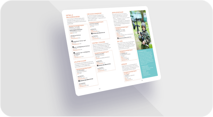 NETBAL & CIRCUS EN OMNISPORT JEPPA SPORTKAMP BALVAARDIGHEDEN Dit unieke kamp is de gedroomde gelegenheid om Door creatief samen te zitten met onze lesgevers In samenwerking met Volleystart Melsele wordt de allerlei circusvaardigheden onder de knie te krijgen: brengen we huidige rages/hypes van onze jeugd tot week gestart met netbal. Doorheen de week zal je acrobatie, jongleren, diabolo … Daarnaast doen we de originele spelideeën. Fortnite war, Pokémon Go, balvaardigheid op verschillende manieren op de proef gekste spelen en sporten. Among us … Ook brengen we vernieuwende materialen gesteld worden. Maandag 28 tot woensdag 30 augustus uit ons verhuuraanbod mee: inflatables, SPORTPARK BEVEREN spelboxen … Het belangrijkste in een Jeppa sportkamp Maandag 28 tot woensdag 30 augustus Klapperstraat 103 | Beveren is de saamhorigheid en de plezierbeleving! Klaar voor SPORTHAL ’T WIT ZAND prijs 19 EUR een fantastische week vol uitdaging en vriendschap? A. Rodenbachlaan 23 | Melsele Schrijf je dan tijdig in! Opvang mogelijk bij Pleziereiland van 9 tot 12 uur Sint-Elisabethstraat 64 | Melsele leeftijd °2014-°2012 Maandag 28 tot woensdag 30 augustus leeftijd °2017-°2015 reservatienummer Z186a van 9 tot 16 uur deelnemers zijn welkom tot 13 uur SPORTHAL ’T WIT ZAND enkel sport van 9 tot 12 uur A. Rodenbachlaan 23 | Melsele prijs 19 EUR van 13 tot 16 uur prijs 69 EUR reservatienummer Z184a leeftijd °2017-°2015 leeftijd °2017-°2011 reservatienummer Z186b meenemen lunchpakket, binnen- en buitenschoenen vooropvang van 7 tot 9 uur + sport reservatienummer Z188 prijs 34 EUR deelnemers zijn welkom van 8 tot 17 uur reservatienummer Z184b VOETBAL 3-DAAGSE sport + namiddagopvang van 12 tot 18 uur Tijdens deze 3-daagse hopen we op een stralend SPY KIDS prijs 42 EUR zonnetje om onze technieken bij te schaven. Bij slecht Nieuwe missie incoming ... Oh nee, er zijn geen spionnen reservatienummer Z184c of te warm weer, gaan we binnen voetballen in de beschikbaar om deze missie op tijd te voltooien. We sporthal. Alles staat in het teken van de bal! Word jij de zullen nieuwe spionnen moeten opleiden. Uit een ruimte vooropvang + sport + namiddagopvang topschutter of beste keeper van het tornooi? ontsnappen, geheim schrift ontcijferen, leren schieten. van 7 tot 18 uur Dat is een missie voor onze spy kids. prijs 64 EUR Maandag 28 tot woensdag 30 augustus reservatienummer Z184d SPORTPARK BEVEREN Maandag 28 tot woensdag 30 augustus Klapperstraat 103 | Beveren van 9 tot 16 uur prijs 19 EUR OC BOERENPOORT KIDSPAINTBALL ATLETIEK 5-KAMP meenemen reservekledij, indoorschoenen Sint-Elisabethstraat 31A | Melsele Heb jij altijd al eens willen paintballen maar Kan je niet kiezen welke discipline het leukste is? Kom prijs 30 EUR is het er nog steeds niet van gekomen? Schrijf ze ontdekken en misschien vind je ze gewoon allemaal van 9 tot 12 uur leeftijd °2013-°2011 leeftijd °2014-°2012 meenemen lunchpakket je dan snel in want voor deze activiteit gaan leuk! De ideale mix voor de atletiek 5-kamp. reservatienummer Z187a reservatienummer Z190 we naar het grootste indoorterrein van België, Maandag 28 tot woensdag 30 augustus deelnemers zijn welkom tot 13 uur gelegen in Gent! Onder ervaren begeleiding ATLETIEKTERREIN start iedereen met een propere overall, een Klapperstraat 103 | Beveren van 13 tot 16 uur KEGELEN paintballmasker, een paintballwapen met 100 prijs 19 EUR leeftijd °2017-°2015 Bij kegelen gaan we net als bij bowling trachten om startpaintballs, 1 herlading van 100 stuks, een reservatienummer Z187b kegels omver te gooien. Wanneer ze alle 9 in één keer drankje en zakje chips. van 9 tot 12 uur omver gegooid worden, zal het belletje rinkelen! Kom jij Dinsdag 29 augustus leeftijd °2017-°2015 het mee ontdekken in de Beverse Kegelclub? van 8.15 tot 12.15 uur reservatienummer Z185a VERTREK SPORTPARK BEVEREN deelnemers zijn welkom tot 13 uur Maandag 28 tot woensdag 30 augustus Klapperstraat 103 | Beveren van 10 tot 12 uur prijs 38 EUR van 13 tot 16 uur ’T ZILLEBEEK lee昀琀ijd °2013-°2009 leeftijd °2014-°2012 Glazenleeuwstraat 134A | Beveren meenemen kids-ID reservatienummer Z185b prijs 13 EUR reservatienummer Z192 leeftijd °2013-°2009 reservatienummer Z191 68 69