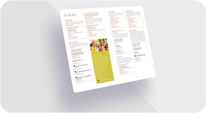 24 > 28 JULI DANSKAMP CASTAARS: FEESTPRET SPEELPALEIS DE GROTE SPROOKJES Sportkamp voor onze kleine feestkapoenen! Zet jullie Deze week staat spelen centraal. Hou je van ravotten? Is SPEURTOCHT feesthoed op en kom mee spelen. Plezier en veel knutselen je ding? Of vind je koken net heel leuk? Zit er FEESTPRET Help! We hebben jullie hulp nodig! De sprookjesfiguren beweging gegarandeerd. een echt sportbeest in jou? Dan ben je meer dan welkom zijn hun spulletjes kwijt. Ga jij al dansend mee op zoek Maandag 24 tot vrijdag 28 juli in ons speelpaleis! Sportkamp voor onze kleine feestkapoenen! Zet jullie naar het mandje van Roodkapje? Of naar het stenen van 9 tot 12 uur Maandag 24 tot vrijdag 28 juli feesthoed op en kom mee spelen. Plezier en veel huisje van de 3 biggetjes? SPORTHAL TASSIJNS van 9 tot 16 uur beweging gegarandeerd. W. Van Doornyckstraat 69 | Haasdonk OC BOERENPOORT Maandag 24 tot vrijdag 28 juli Maandag 24 tot vrijdag 28 juli leeftijd °2019-°2018 Sint-Elisabethstraat 31A | Melsele van 9.30 tot 11.30 uur van 10 tot 12 uur prijs 31 EUR prijs 50 EUR LINDENLAANSCHOOL DANSZAAL CASTART meenemen reservekledij leeftijd °2017-°2014 Lindenlaan 141 | Beveren Lindenlaan 98 | Beveren reservatienummer Z73 meenemen lunchpakket leeftijd °2020 (3 jaar zijn bij aanvang van het leeftijd °2020-°2018 (3 jaar zijn bij aanvang van het reservatienummer Z76 sportkamp) sportkamp) prijs 21 EUR prijs 31 EUR DIERENPARADIJS VAN meenemen reservekledij meenemen reservekledij JU-JITSU INLINESKATEN reservatienummer Z69 reservatienummer Z71 Heb jij goede beenspieren? Wil je eens iets anders doen De deelnemers leren de dieren kennen van ju-jitsu: de dan wandelen of fietsen? Dan is inlineskaten voor jou beer, het hondje, de garnaal, de egel … Al deze dieren een plezante manier om te sporten, kom het samen met JUNGLEKAMP leren elkaar kennen en halen de gekste kunstjes uit. ons ontdekken! Na even oefenen maken we regelmatig Deze week wordt spannender dan ooit! We banen ons Maandag 24 tot vrijdag 28 juli de verplaatsing naar het nabijgelegen skateparkje. Eigen een weg doorheen de wildernis en trotseren de gevaren SPORTPARK BEVEREN inlineskates en bescherming mogen gebruikt worden. van de jungle. Klapperstraat 103 | Beveren Indien je hierover niet beschikt, kan het gehuurd worden. prijs 21 EUR Dit kamp wordt georganiseerd i.s.m. Skate Vlaanderen. Maandag 24 tot vrijdag 28 juli SPORTHAL ’T WIT ZAND van 10 tot 12 uur Maandag 24 tot vrijdag 28 juli A. Rodenbachlaan 23 | Melsele leeftijd °2018-°2017 SPORTPARK BEVEREN Opvang mogelijk bij Pleziereiland reservatienummer Z74a Klapperstraat 103 | Beveren Sint-Elisabethstraat 64 | Melsele prijs 56 EUR leeftijd °2019-°2018 MULTI SKILLZ van 13 tot 15 uur huur inlineskates + 10 EUR meenemen reservekledij WELPENKAMP leeftijd °2016-°2014 huur bescherming + 10 EUR reservatienummer Z74b enkel sport van 9 tot 12 uur Tijdens dit kamp gaat jouw kapoen samen van 9 tot 12 uur prijs 31 EUR met Skilly een avontuur beleven vol beweging, leeftijd °2017-°2015 reservatienummer Z70a uitdagingen en samenspel. Naast motorische AQUAFUN reservatienummer Z77a ontwikkeling en beweegplezier werken we aan Zwemspelletjes, waterestafettes, hydrobics op deelnemers zijn welkom tot 13 uur vooropvang van 7 tot 9 uur + sport lifeskills en creativiteit van jouw beweegtopper kindermaat (oefeningen en spelletjes op muziek) … Een prijs 56 EUR zodat zij de kans krijgen om zich veerkrachtig te speelse aanrader voor sportertjes die houden van water van 13 tot 16 uur reservatienummer Z70b ontwikkelen in de sport en in het leven. en van plezier. Diploma Waterschildpad vereist! leeftijd °2014-°2012 reservatienummer Z77b sport + namiddagopvang van 12 tot 18 uur Maandag 24 tot vrijdag 28 juli Maandag 24 tot vrijdag 28 juli prijs 69 EUR van 9 tot 12 uur van 10 tot 12 uur reservatienummer Z70c SPORTPARK BEVEREN LAGO DE MEERMINNEN Klapperstraat 103 | Beveren Pastoor Steenssensstraat 108a | Beveren vooropvang + sport + namiddagopvang prijs 76 EUR prijs 64 EUR van 7 tot 18 uur lee昀琀ijd °2020-°2018 (3 jaar zijn bij aanvang leeftijd °2017-°2014 prijs 107 EUR van het kamp) meenemen vereist diploma reservatienummer Z70d meenemen reservekledij reservatienummer Z75 reservatienummer Z72 deelnemers zijn welkom van 8 tot 13 uur 34 35