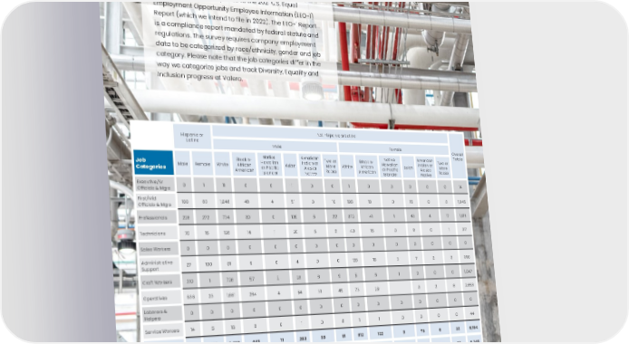 110 Hispanic or Latino Not Hispanic or Latino Overall Totals Male Female Job Categories Male Female White Black or African American Native Hawaiian or Pacific Islander Asian American Indian or Alaska Native Two or More Races White Black or African American Native Hawaiian or Pacific Islander Asian American Indian or Alaska Native Two or More Races Executive/Sr Officials & Mgrs 0 1 11 0 0 1 0 0 1 0 0 0 0 0 14 First/Mid Officials & Mgrs 166 83 1,048 48 4 51 6 10 195 16 0 15 0 3 1,645 Professionals 228 272 774 30 0 109 5 22 372 41 1 43 4 17 1,918 Technicians 70 15 126 14 1 20 5 2 40 15 0 8 0 1 317 Sales Workers 0 0 0 0 0 0 0 0 0 0 0 0 0 0 0 Administrative Support 27 100 61 9 0 4 0 0 125 15 3 7 2 3 356 Craft Workers 210 1 726 57 2 23 8 9 5 5 1 0 0 0 1,047 Operatives 636 23 1,661 284 4 54 31 45 73 29 3 2 8 2,853 Laborers & Helpers 0 0 0 0 0 0 0 0 0 0 0 0 0 0 0 Service Workers 14 5 16 3 0 1 0 3 1 1 0 0 0 0 44 TOTAL 1,351 500 4,423 445 11 263 55 91 812 122 5 76 8 32 8,194 PREVIOUS REPORT TOTAL 1,344 493 4,602 428 13 250 53 85 832 122 3 81 9 30 8,345 The data below corresponds to the 2021 U.S. Equal Employment Opportunity Employee Information (EEO-1) Report (which we intend to file in 2022). The EEO-1 Report is a compliance report mandated by federal statute and regulations. The survey requires company employment data to be categorized by race/ethnicity, gender and job category. Please note that the job categories differ in the way we categorize jobs and track Diversity, Equality and Inclusion progress at Valero. EEO-1 Report
