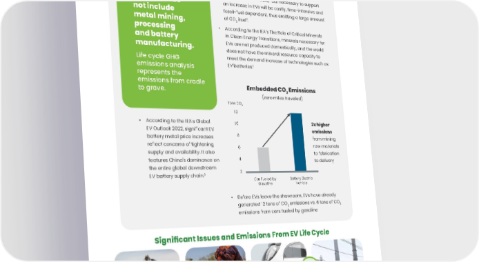 14 Electric Vehicles (EVs) Are Not Zero-Emission Vehicles. See page 111 for notes regarding this page. MINING/ EXTRACTION COBALT & RARE EARTH PROCESSING MANUFACTURING EVS POWER GENERATION Significant Issues and Emissions From EV Life Cycle Embedded CO 2 Emissions (zero miles traveled) Car Fueled by Gasoline Battery Electric Vehicle 2x higher emissions from mining raw materials to fabrication to delivery 10 8 6 4 2 Tons CO 2 12 EVs' embedded emissions do not include metal mining, processing and battery manufacturing. Life cycle GHG emissions analysis represents the emissions from cradle to grave. 1 International Energy Agency (2021), The Role of Critical Minerals in Clean Energy Transitions, IEA, Paris. All rights reserved. 2 International Energy Agency (2022), Global EV Outlook 2022, IEA, Paris. All rights reserved. • An EV is not “zero emissions,” as the electricity that powers an EV is often generated by fossil fuels. • The infrastructure build-out necessary to support an increase in EVs will be costly, time-intensive and fossil-fuel dependent, thus emitting a large amount of CO 2 itself. • According to the IEA’s The Role of Critical Minerals in Clean Energy Transitions, minerals necessary for EVs are not produced domestically, and the world does not have the mineral resource capacity to meet the demand increase of technologies such as EV batteries. 1 • According to the IEA's Global EV Outlook 2022, significant EV battery metal price increases reflect concerns of tightening supply and availability. It also features China's dominance on the entire global downstream EV battery supply chain. 2 • Before EVs leave the showroom, EVs have already generated 12 tons of CO 2 emissions vs. 6 tons of CO 2 emissions from cars fueled by gasoline