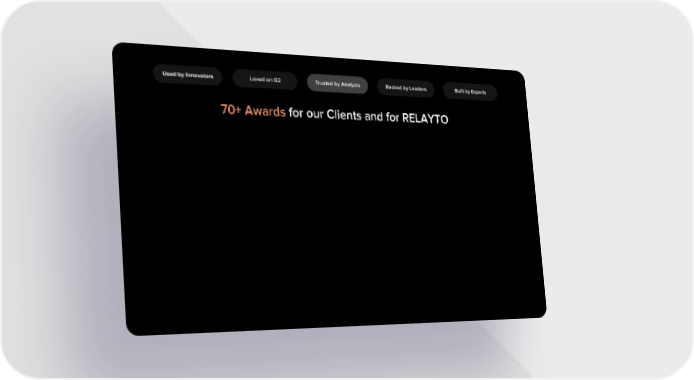 Validated by Clients & Experts Page 2 Page 4Used by Innovators Loved on G2 Trusted by Analysts Backed by Leaders Built by Experts 70+ Awards for our Clients and for RELAYTO