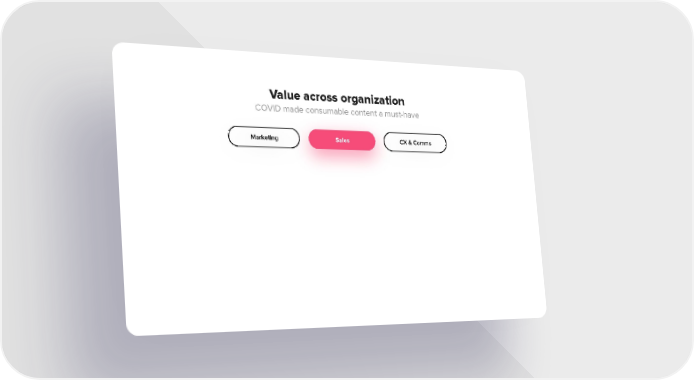 Value across organization COVID made consumable content a must-have Marketing Sales CX & Comms