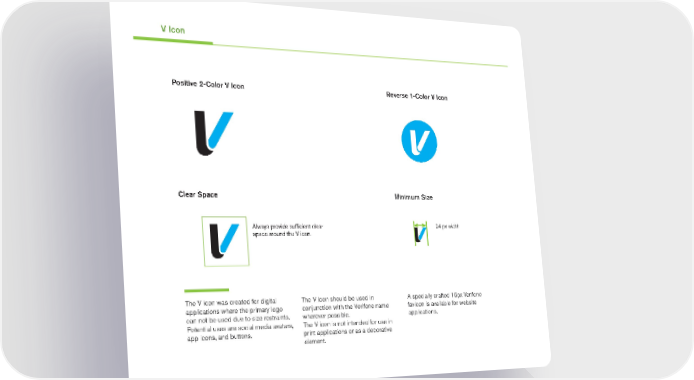 Positive 2-Color V Icon Clear Space Reverse 1-Color V Icon The V icon was created for digital applications where the primary logo can not be used due to size restraints. Potential uses are social media avatars, app icons, and buttons. The V icon should be used in conjunction with the Verifone name wherever possible. The V icon is not intended for use in print applications or as a decorative element. A specially crafted 16px Verifone favicon is available for website applications. Always provide sufficient clear space around the V icon. 24 px width Minimum Size V Icon